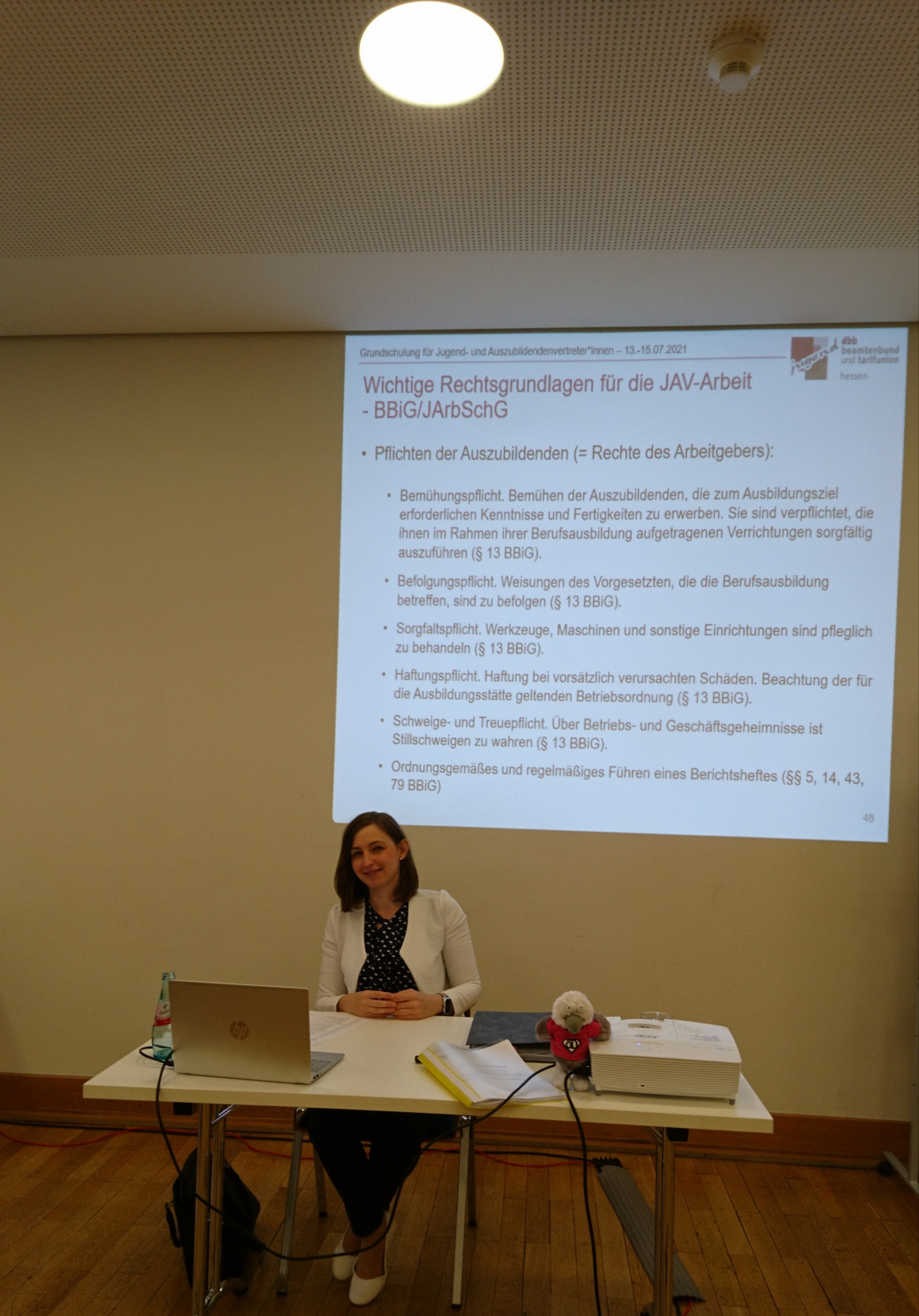 Mit einem Blick in die Gesetze und Tarifverträge erläuterte Janna Melzer die wichtigsten Rechtsgrundlagen und füllte somit das „Lexikon der Jugend- und Auszubildendenvertretung“.